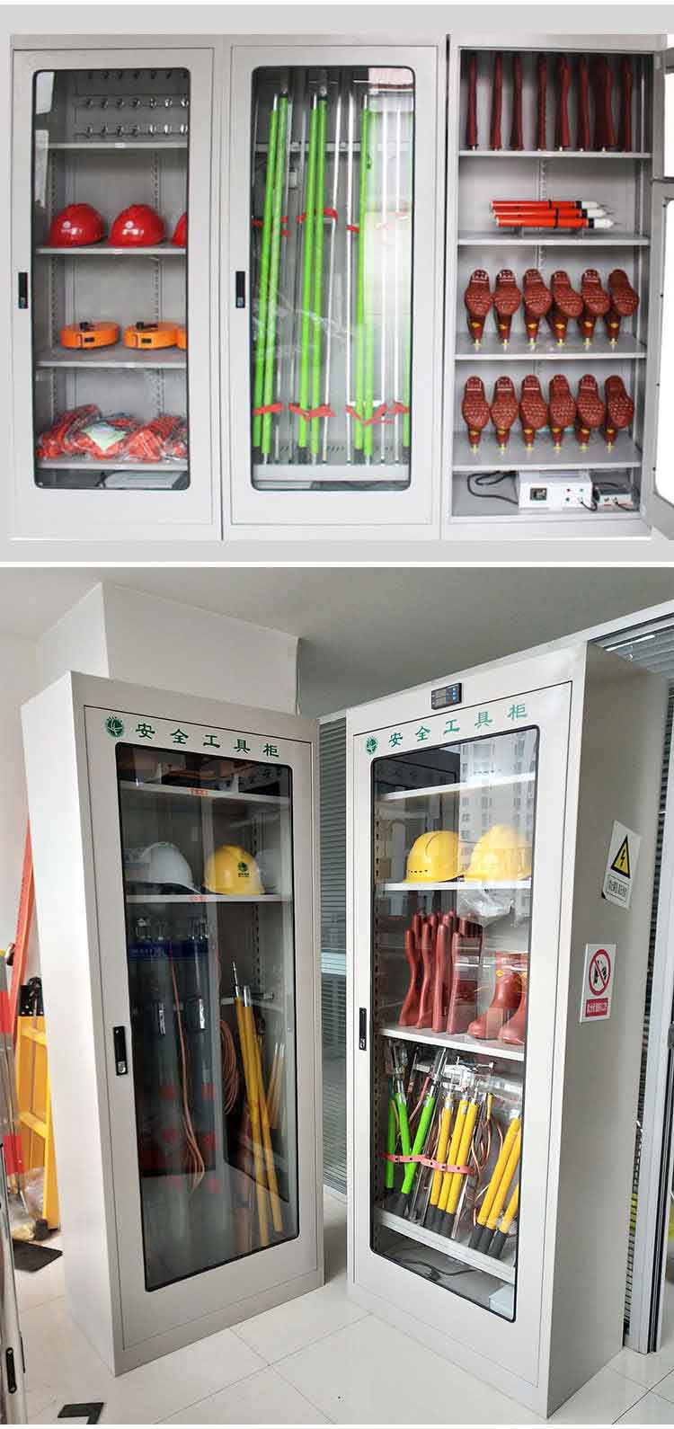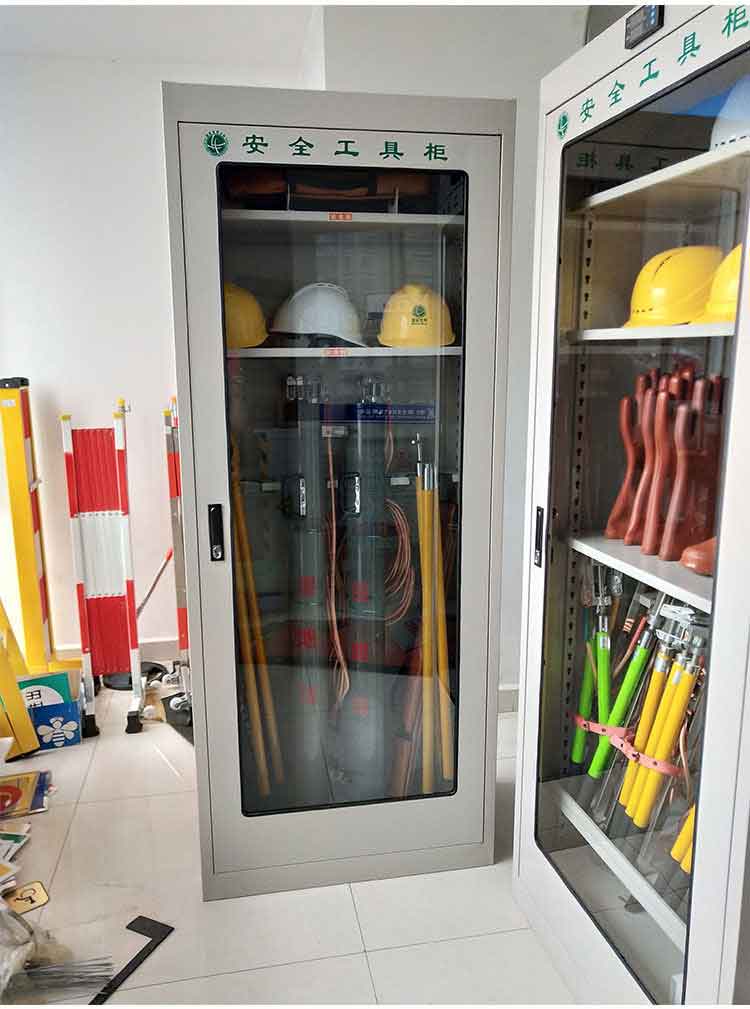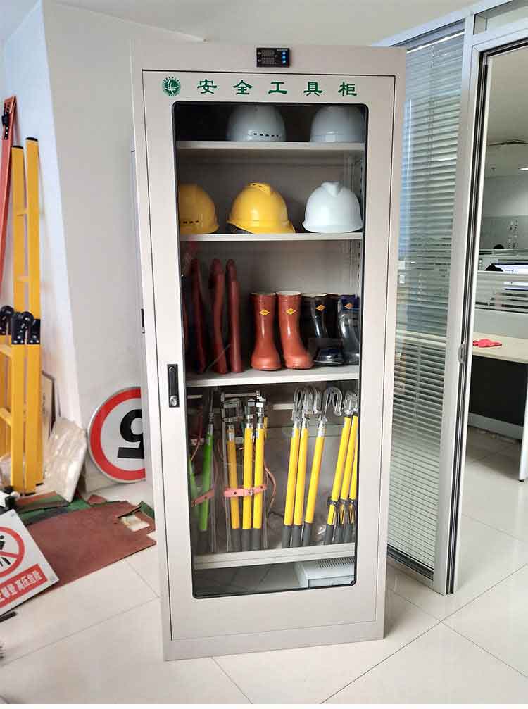 電力安全工具柜又稱安全工器具柜,按功能可以分為普通排風(fēng)除濕柜,智能烘干除濕柜,智能抽濕除濕柜等 外殼選用1.2優(yōu)質(zhì)冷板,采用磷化鋅系、藝術(shù)型靜電噴涂,高強(qiáng)度鋼化透明玻璃(外觀色為微機(jī)灰)。接地線均配有接地線繞線架及帶夾反光編號(hào)牌,使接地線纏繞規(guī)范不易損壞,擺放整齊使用方便;絕緣手套配有防粘連撐板,絕緣擋板、絕緣棒、驗(yàn)電筆、操作桿均設(shè)有橡膠墊定位卡,安全帶、腳扣、鑰匙設(shè)有專用掛鉤,標(biāo)示牌按種類分格放置,圍網(wǎng)配有專用包,網(wǎng)桿配有專用筒,網(wǎng)桿座分格放置,防毒面具配有專用箱,呼吸器設(shè)有專用滑板。廣泛應(yīng)用于各種電壓等級(jí)的變電站、集控站、線路工區(qū)以及電力公司客服中心等單位和部門,并適應(yīng)不同溫濕度地區(qū)的使用。