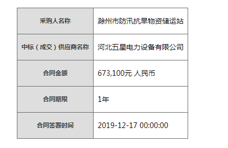 熱烈祝賀河北五星滁州市防汛抗旱物資儲運(yùn)站2019年防汛抗旱物資一舉中標(biāo)!